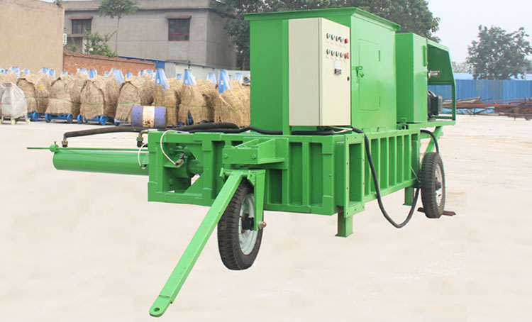 ;卧式秸秆打包机投资较大、但生产效率提高10倍、压力大包块重量大、可以弥补设备投资的缺点。移动式液压打包机
